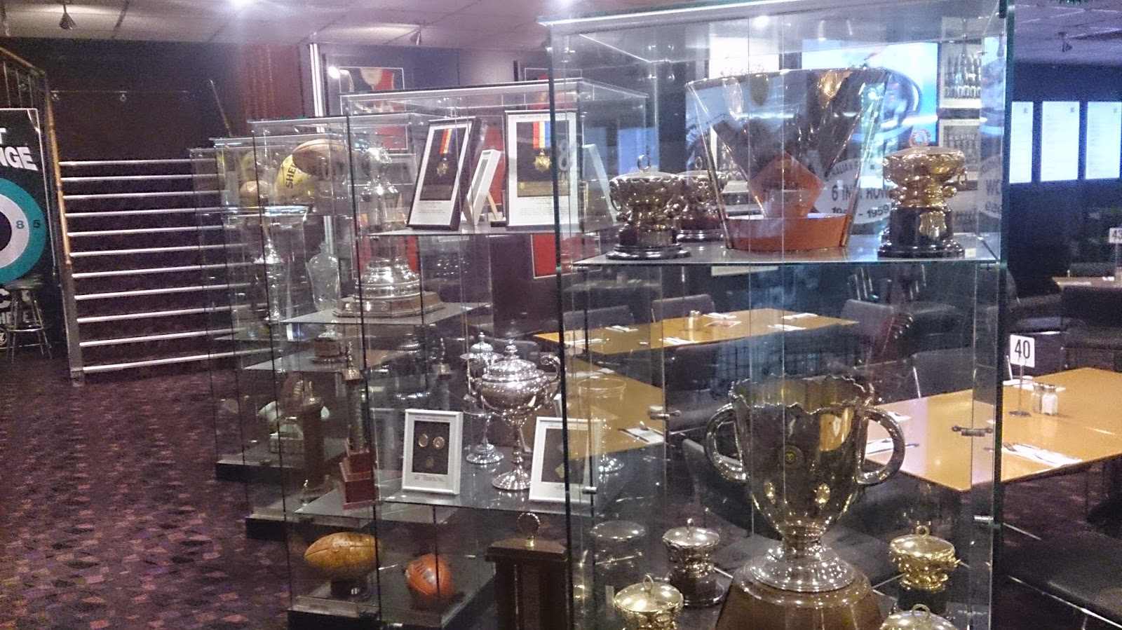 So, after buying a beer (but you would have known that if you read the caption on the above photo) we wondered around the club, noticing that not only is it a fully fledged restaurant, but also has numerous memorabilia on the walls. These include guernseys from former players, a hall of fame (which only includes players from the Magpies – the Power does not seem to be represented) as well as a number of glass cases which contains all of their trophies and medals. Along with that there is also a store which sells all manner of Port Adelaide items, and if you wish to become a member, well, you can do that here as well. Okay, it is a little out of the way, and it was pretty quiet when I was here, but it was certainly worth the trip. Oh, when I got home and told my Dad where I had been, he just smiled and said that he and my sister had got tickets for a proper tour (though from what it appears these were special tickets that were not available to just anybody, but then Travis Boak does take us on a tour of the facilities on Youtube, though it appears to be promoting solar energy).