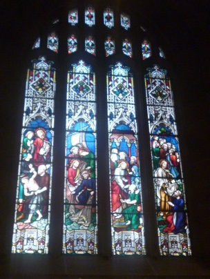 Here are some of the windows from the upper level, though they were much more difficult to take photos of than the lower ones (though getting a good photograph was hard enough – you would need a ladder, or even a cherry picker – to get a decent photo).