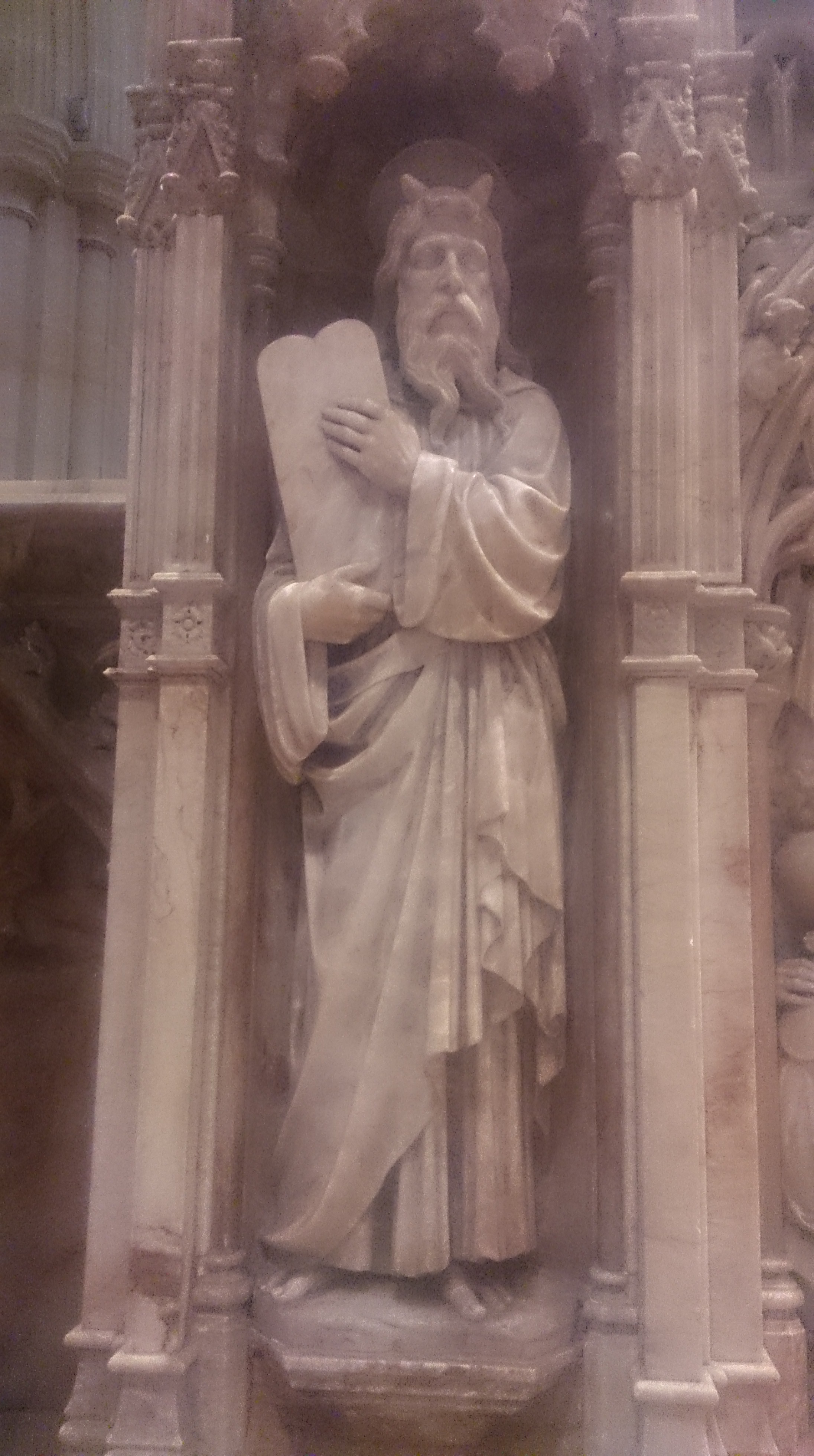 nted out one of the major reasons why we should not be going around creating images from the Bible, and that was this one really odd carving of Moses. Basically he had horns. I have to say that I have never see an image of Moses where the guy had horns. Our guide explained that the reason he has horns is because of a mistranslation from Jerome’s Bible. Apparently when Moses comes down from Mt Sinai with the ten commandments the Hebrew says that he glowed with the glory of God. However, that word is also translated to mean horns, which is why they carved Moses with horns. Mind you, it is still really baffling because seriously, that is one massive mistranslation because the context is really clear and seriously, horns – it simply doesn’t make sense. As I have suggested, this is the only carving, or picture, of Moses with horns that I have seen, however if I wander around the Vatican enough I’ll probably find some other examples.